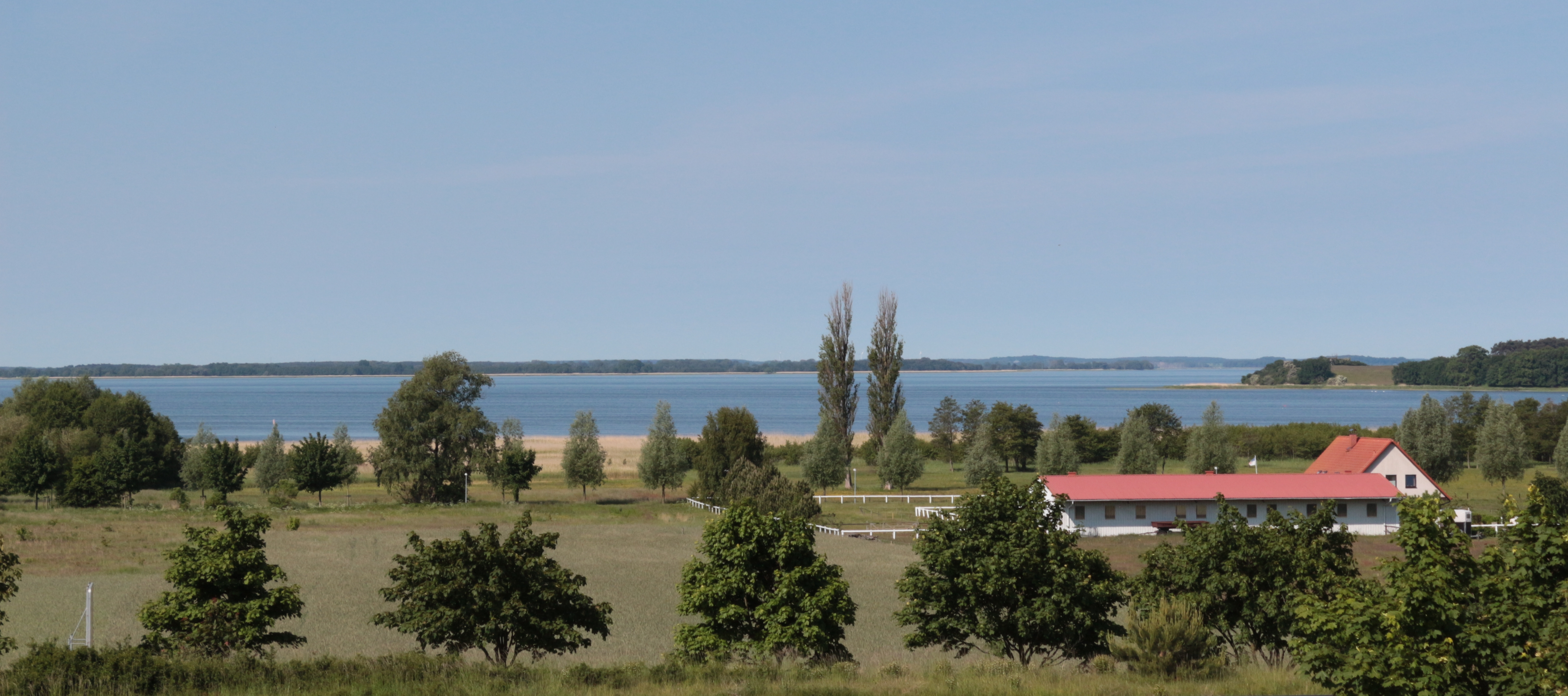 Aus dem Dachfenster blicken Sie auf das Achterwasser und den Ort Ückeritz.