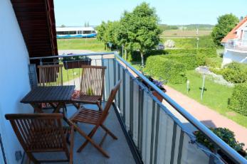 Vom Balkon sehen Sie am Abend die Sonne über dem Loddiner Höft untergehen.