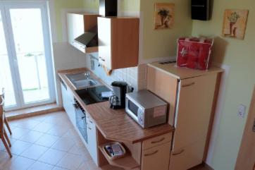 Backofen, Mikrowelle, Kaffeemaschine, Toaster, Wasserkocher, Geschirr und
